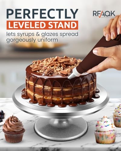 RFAQK 12 Inch Aluminium Alloy Cake Turntable – Rotating Stand for Decorating Cakes, Cupcakes and Pastries with Precision