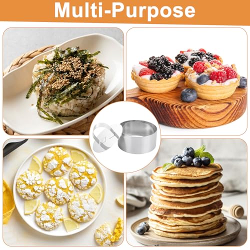 - WIDELY USED: The stainless steel mini cheesecake rings serve as versatile cutting tools for pastries, cakes, mousses, biscuits, pancakes, and cheesecakes; these stainless steel egg rings can also be stored in the fridge for desserts and can be used for frying eggs.