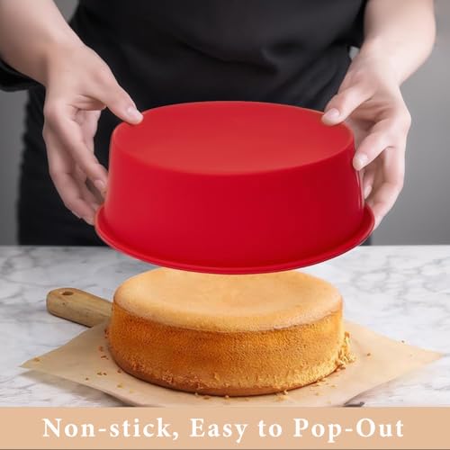 - CONVENIENT SET: These flexible cake moulds can be washed directly with water or soapy water and dried. They are reusable; after each use, please clean your round cake pan promptly and store it in a dry, cool place.