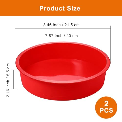 Rairsky 2-Pack Reusable Round Cake Baking Trays, 20cm/8inch Silicone Cake Moulds for Air Fryer, Versatile Cake Tins Baking Pans, Non-Stick Silicone Bread Pan Set, Ideal for Cake, Bread, Pizza