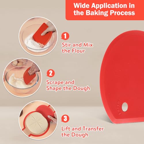 • Package Contents: This set comprises 2 baking slings, along with 1 dough scraper and 1 silicone basting pastry brush for your convenience. The dough scraper features a flat edge that effortlessly cuts and separates sourdough without harming your countertop, while the curved edge is flexible, accommodating various baking tasks.