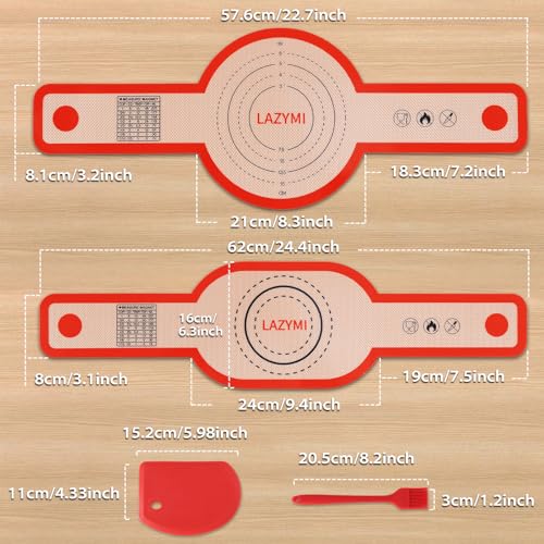 Lazymi 2PCS Silicone Bread Sling for Dutch Ovens – Oval & Round, Reusable Sourdough Sling with Long Handle for Dough Transfer, Baking Mat & Accessories, Red