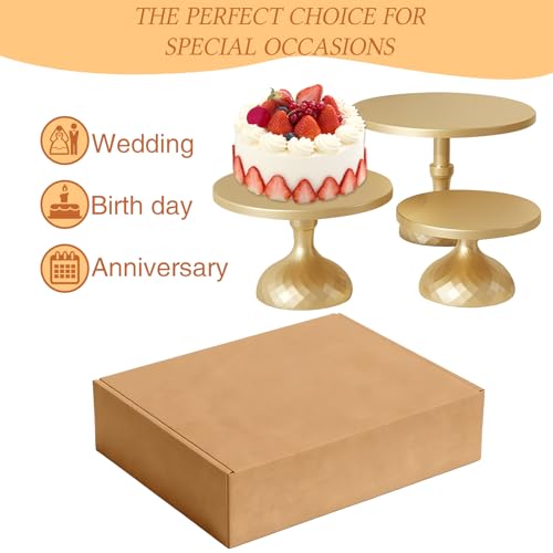 Yeqqzq 3-Piece Metal Cake Stand Set for 6-12 Inch Cakes – Elegant Dessert Display for Parties, Weddings, Birthdays, and Anniversaries (Gold)