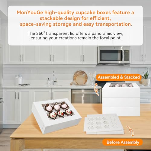- ✅【MONYOUGE CUPCAKE BOXES FOR 12 CUPCAKES】 – Our disposable food-safe cupcake carriers are crafted from premium eco-friendly kraft paper that has been reinforced for enhanced stability and durability. You won’t need to worry about breaking the boxes, and individual cupcake boxes ensure that 12 cupcakes stay securely in place with the cardboard insert. Our cupcake boxes accommodate most cupcakes.