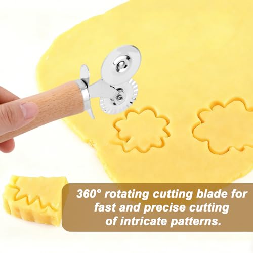 - Professional Double Wheel Design: Equipped with both a wheel cutter and rolling cutting wheels for diverse pastry preparation. Effortlessly achieve perfect edges for ravioli, pie crusts, and cookies using this stainless steel pastry cutter wheel.