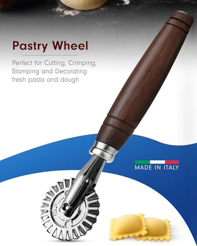 Tredoni 4cm Pastry Wheel – Dough Stamp Cutter/Crimper for Pasta, Ravioli & Pie Making, Stainless Steel with Wooden Handle