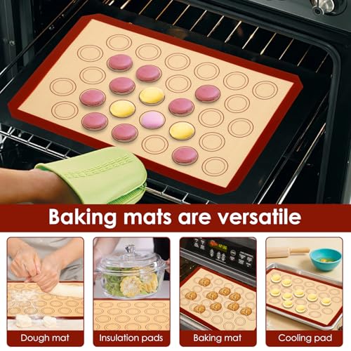 4Pcs Silicone Baking Mats, Non-Stick Macaron Sheets with Measurements, 42×29.5cm Reusable Non-Slip Tray Liners for Pastries, Macarons, Cakes, Cookies, and Bread