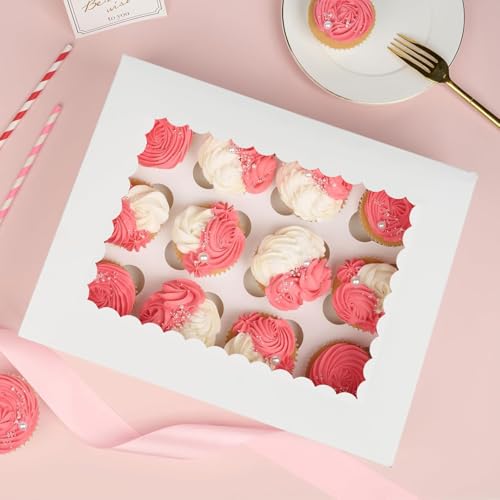Tlczrva 5 Pack 12 Hole White Cupcake Boxes with Clear Viewing Window, Food-Safe Cake Boxes with Removable Dividers – Perfect for Muffins, Cupcakes and Pastries (32.5 x 25 x 8.5 cm)