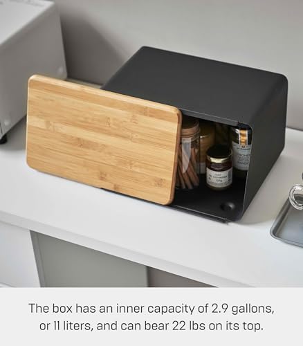YAMAZAKI 5291 TOWER Bread Storage Case with Detachable Lid, Black Steel/Bamboo, Minimalist Design, 31.5 x 24.5 x 18.5 cm