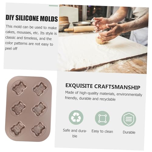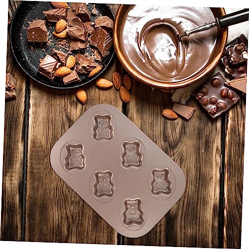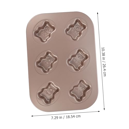 LOORGVEL 6-Cavity Carbon Steel Non-Stick Bear Cake Baking Tray for Kids’ DIY Home Baking – Golden Bakeware