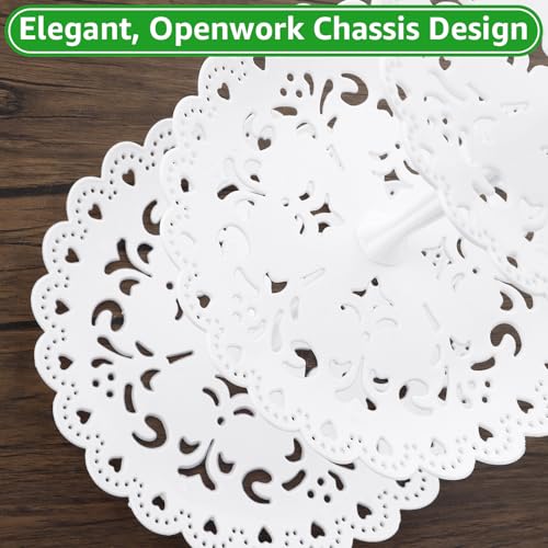 • Sturdy and Durable Construction: Our white cake stands are crafted from safe, food-grade plastic. They are compact, lightweight, and boast a smooth surface. The handle atop allows for easy retrieval.