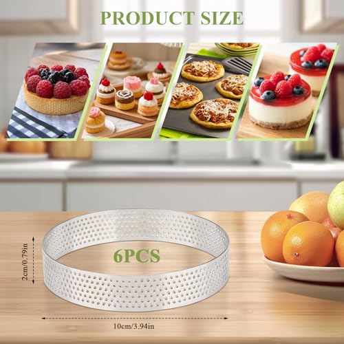 Perforated Tart Ring: The crumpet rings boast a distinctive and consistent vent hole design that efficiently releases trapped air within the tart shell during baking. This prevents the shell from puffing or cracking, resulting in a crisper and uniformly textured tart shell, perfect for a variety of dessert bases.