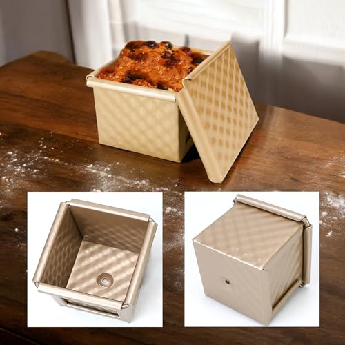 BuleVina 6-Piece Loaf Pan Set with Lid for Perfect Toast Pullman Loaf – Non-Stick Mini Water Cubes