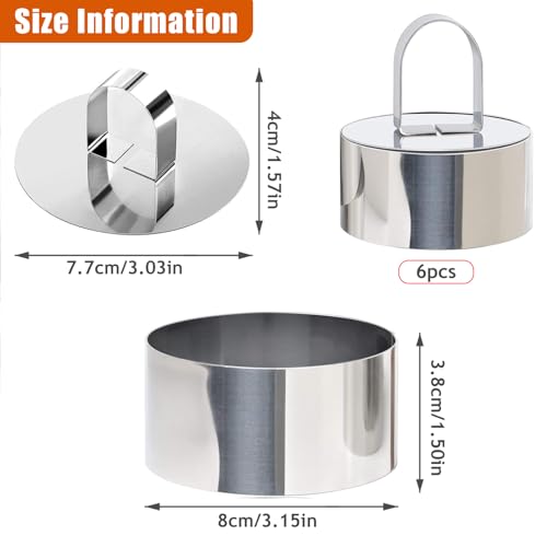 Set of 6 Round Food Rings with Pusher 8cm, Stainless Steel Cake Moulds for Pastry, Mousse, and Desserts – Non-Stick Baking Tools
