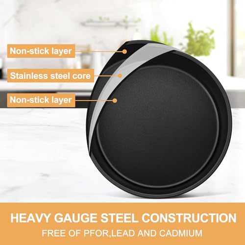 - HEALTHY STAINLESS STEEL CORE: Joyfair round cake pans are crafted from food-grade stainless steel core for superior rust resistance and corrosion protection, ensuring they serve you for many years. No harmful substances are emitted at high temperatures, providing safe and healthy baking for you and your family.