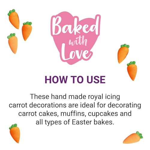 - Carrot Sugar Piping: This pack of 12 carrot-shaped sugar decorations serves as the perfect finishing touch for a classic carrot cake. They also make excellent embellishments for all your Easter bakes.