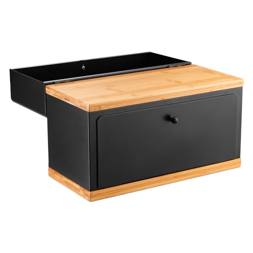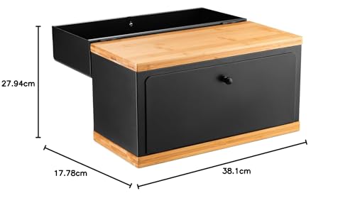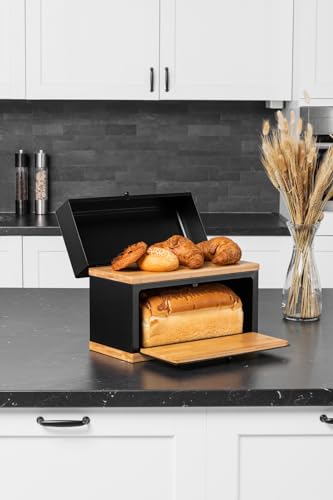 - Secure Closure – Concerned about inquisitive pets or little hands? Both the top and side lids of this black bread bin close securely to safeguard contents, making it a dependable bread storage box for daily kitchen use (Dimensions – 15 × 11 × 7 inches).