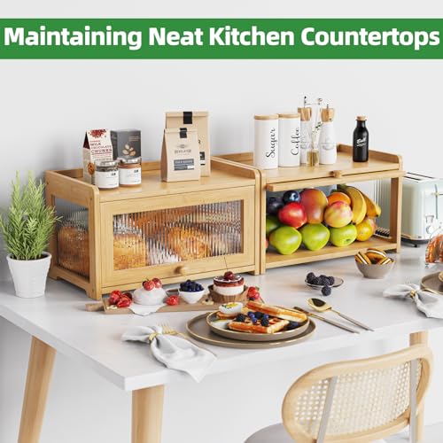 BAMBANG Bamboo Bread Bins for Kitchens – Stylish Wooden Bread Storage Box with Wavy Sides & Clear Back, Ideal for Homemade Breads