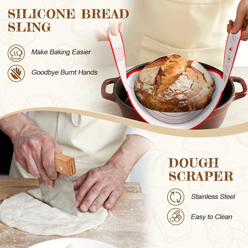 • A Complete Baking Collection: The bread proofing basket collection thoughtfully includes essential tools for sourdough making, eliminating the requirement for additional purchases. It enables you to easily embark on your sourdough journey, allowing novices to begin promptly and relish the joy of baking. (Accessories as depicted)