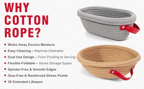 - š Innovative Splinter-Free Cotton Craftsmanship – Made from high-quality cotton rope free of glue or chemicals, our banneton proofing basket collection eliminates splinter hazardsāencouraging sustainable baking. The closely woven structure resists cracking for everyday use, ensuring untainted fermentation. Perfect for health-conscious bakers seeking dependable sourdough proofing baskets that protect dough and family.