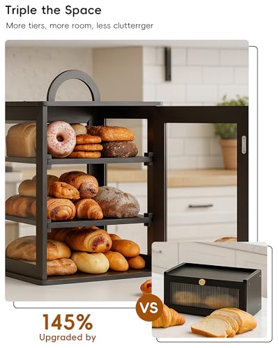 - Spacious 3-Tier Design for Your Baked Favourites: Measuring 13.2” x 12.2” x 16.5”, this generously sized bread bin holds numerous loaves, pastries, or rolls without squashing them—keeping your baked goods tidy and organised.
