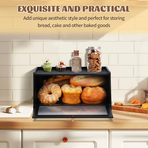 - Spacious & Space-Saving: Our large bread box measures (40CM*24.7CM*20CM), providing ample space for personal and family use without squashing your bread. A practical farmhouse kitchen organiser, it fits perfectly in kitchens and dining areas. The acrylic door allows for easy viewing of contents while keeping your items fresh and tidy.