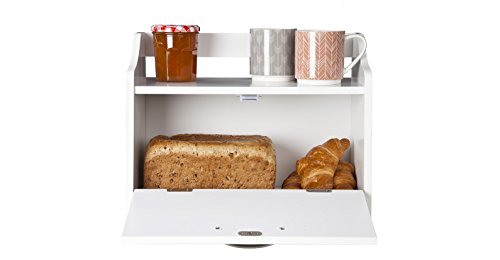Stylish Brands Bread Storage Bin in Timeless White, Standalone Organiser with Top Shelf – Assembly Needed