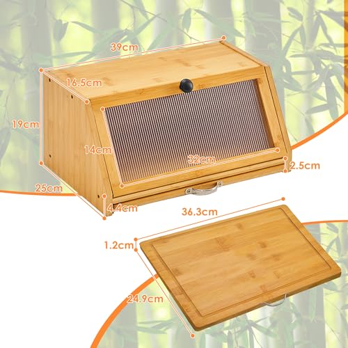 YOUDENOVA Bamboo Bread Box with Integrated Cutting Board – Stylish Wooden Storage for Bread, Spices & More, 39x25x20 cm, Natural Finish
