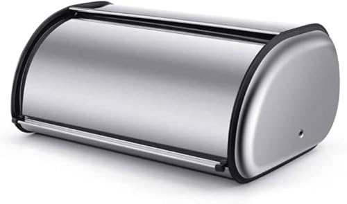 OLOTU Stainless Steel Bread Holder with Roll Top Lid – Spacious Silver Bread Bin for Home and Restaurant Storage