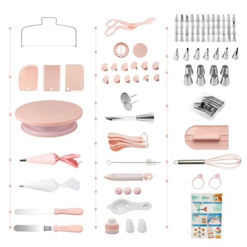 GREENSAPPIRE 137-Piece Cake Decorating Set with Turntable, Piping Tips, Pastry Bags, Spatulas & Fondant Tools – Perfect for All Skill Levels (Pink)