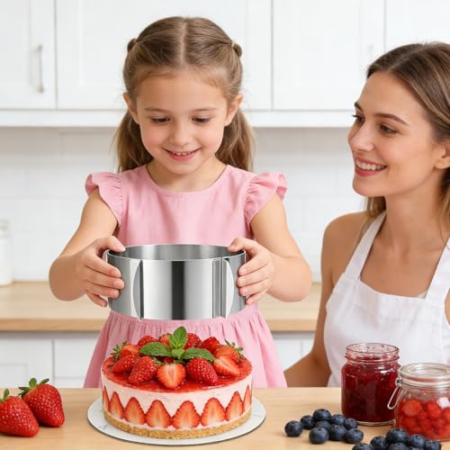 • Easy to Use: This stainless steel round mould features two handles for excellent handling. The ring can be effortlessly removed by expanding it without damaging the cake.