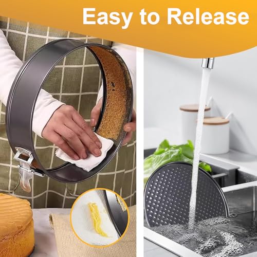 - 【Safe & Durable Material】Our springform cake tins are crafted from carbon steel, featuring a carbon coating that remains intact even after frequent use. This cake tin is suitable for storing baked items in the fridge or freezer.