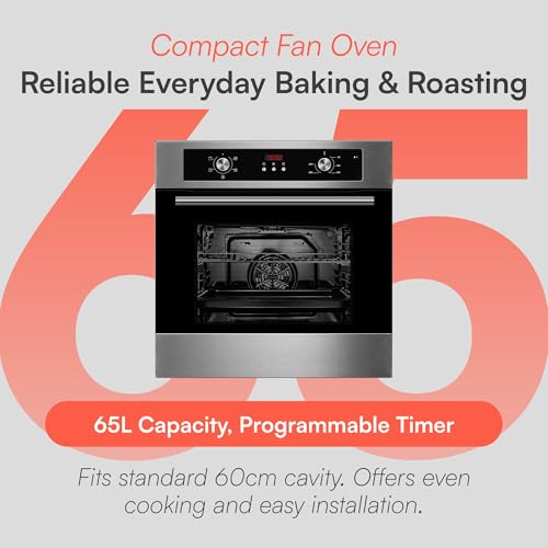 Cookology COF605S 60cm Built-In Electric Fan Oven with 65 Litre Capacity, Mechanical Dial Timer, and Grill – Stainless Steel Finish