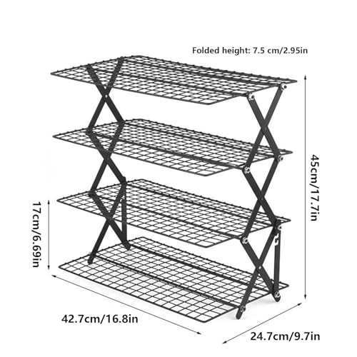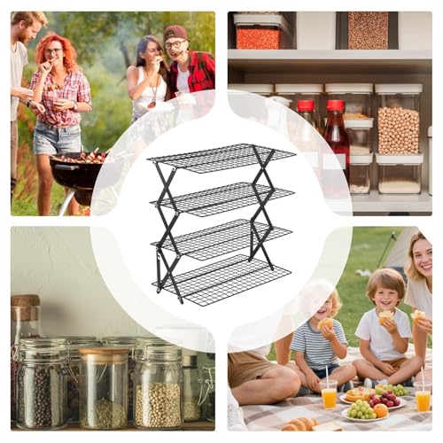 - FOLDABLE & FUNCTIONAL DESIGN: This baking cooling rack showcases a four-tiered, multi-tiered folding structure that ensures optimal use of kitchen counter space while supporting the simultaneous cooling of multiple baking sheets, making it ideal for enhancing workflow in smaller kitchen areas due to its folding capability that simplifies storage and repeated use.