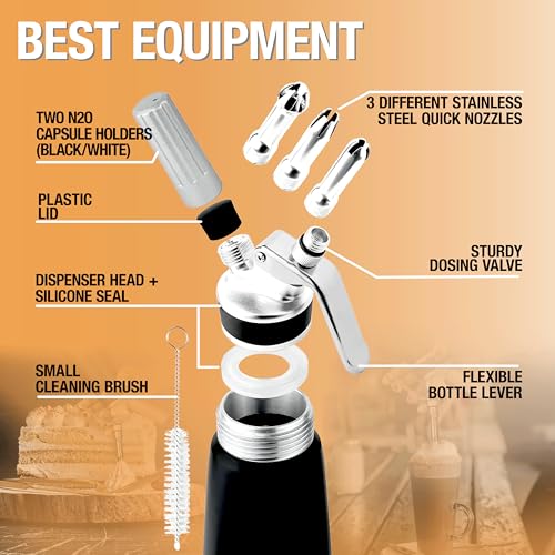 Thiru Cream Whipper 500ml with Toolbox – Whipped Cream Dispenser for Desserts, Espuma & Hot Foam – eBook + 3 Stainless Steel Nozzles – 100-Day Trial