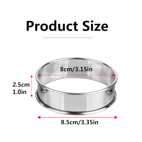 - Dimensions: Each metal cake ring measures approximately 8 cm/3.15 inches in diameter and 2.5 cm/1 inch in height. The package includes a set of 6 round cake rings.