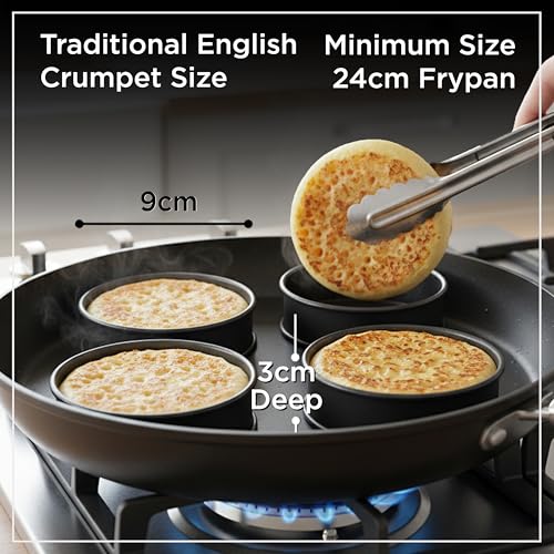 - MULTIFUNCTIONAL BREAKFAST & BAKING TOOL – More than just crumpet rings; ideal for frying eggs, shaping English muffins, crafting sourdough crumpets, and mini pancakes! Set of 4 rings allows for batch cooking for family breakfasts.