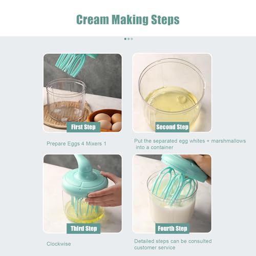 - Quick and Uniform: The Hand-Crank Egg Beater features coaxial 4-axis stirring rods; each set of 4 rods rotates a circle equivalent to stirring 100 times, creating rapid bubbles in just 40 seconds for quick and consistent mixing of egg liquid.
