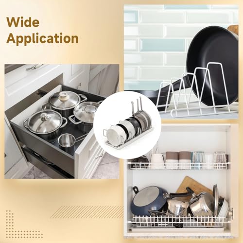 - Effortless Tool-Free Assembly: Simple to assemble by inserting dividers into slots; no screws or drilling needed; installation or disassembly takes mere minutes; easy to reconfigure whenever cookware storage requirements change.