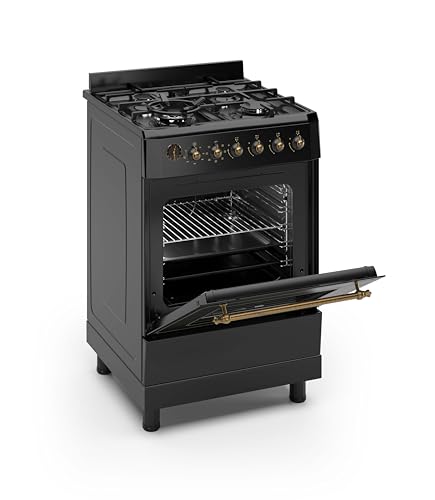 Ferre F6IP40E7-BL-RETRO-W 60cm Freestanding Dual Fuel Cooker Featuring Wok Burner & Turbo Fan – Matte Black Finish