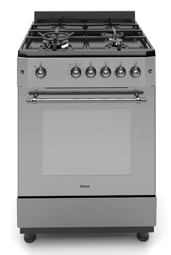 Ferre F6IP40GF-MBL-RETRO-W 60cm Freestanding Gas Cooker with Wok Burner & Turbo Fan – Anthracite Stainless Steel Finish