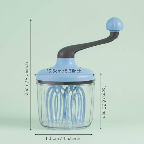 Predolo Hand Crank Egg Beater – Lightweight and Easy to Clean Mixer with Container for Cake Shops – Sky Blue