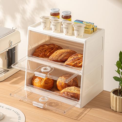 YVVVVY Spacious Bread Bin for Kitchen Countertop, 2-Tier Bread Storage with Date Dial, Clear Door Bread Keeper for Pantry and Cupboard