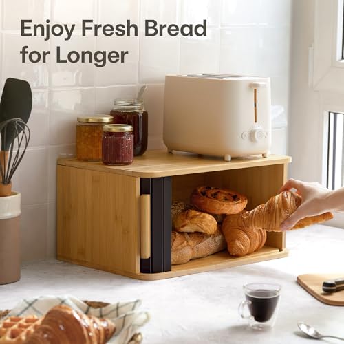 - Sustainable & Chic: Constructed from durable FSC-certified bamboo, the bread box is environmentally friendly and showcases a natural wood grain that brings a warm, elegant flair to any kitchen.