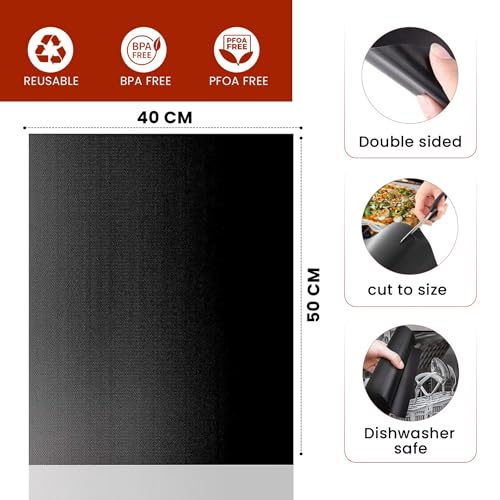 - Safe, Reusable & Eco-Friendly—No harsh chemicals. No unpleasant odours. Just BPA & PFOA-free materials of oven mat that safeguard your food, your family, and the environment. Reuse them hundreds of times and bid farewell to wasteful foil and harsh cleaning sprays.