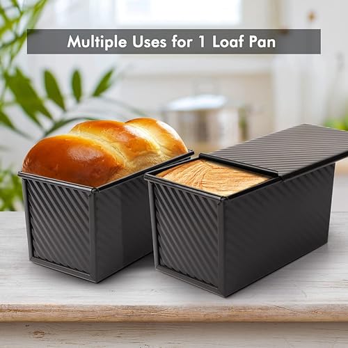Kliplinc 2 Pack Non-Stick Loaf Tin with Lid – Carbon Steel Bread Baking Pan for Toast and More, Black