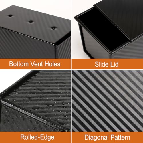 - Lid + 3 Bottom Vent Holes for Ideal Texture: The snug-fitting lid seals in moisture, keeping the bread soft within while achieving a crispy crust; the three vent holes on the bottom of the loaf tin promote even heat distribution, preventing sogginess. This ensures consistent baking results every time.