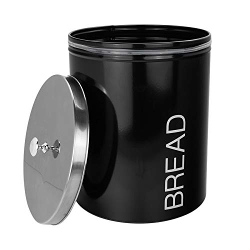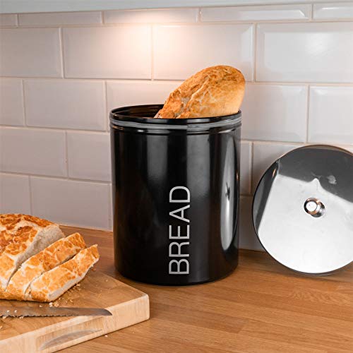Harbour Housewares Black Metal Bread Bin – Round Retro Storage Canister for Kitchen Organisation & Home Décor with Airtight Lid