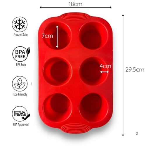 - ✔️ Premium Silicone: Our 6-cup muffin tray is manufactured from 100% BPA-free, food-safe silicone—non-toxic, crack-resistant, and environmentally friendly. Ideal for baking muffins, cupcakes, or Yorkshire puddings. Size: 25.5 x 17.5 x 4 cm (Red).
