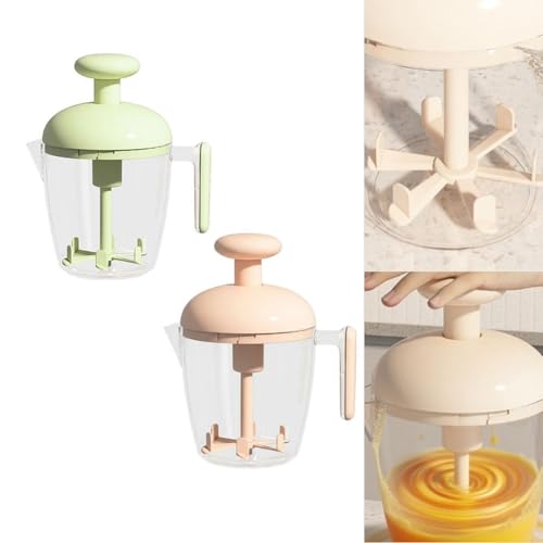 - [ERGONOMIC PRESS HANDLE] The ergonomic handle fits comfortably in your palm for easy control; the hand-pushed rotary action alleviates wrist strain and provides consistent motion for extended mixing tasks.